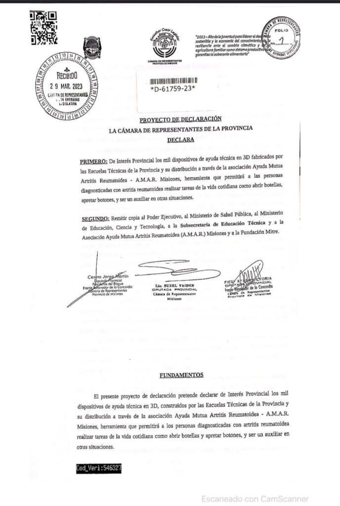 CAMARA DE DIPUTADOS DE MISIONES 2023. APOYANDO LEY DE ARTRITIS REUMATOIDEA.